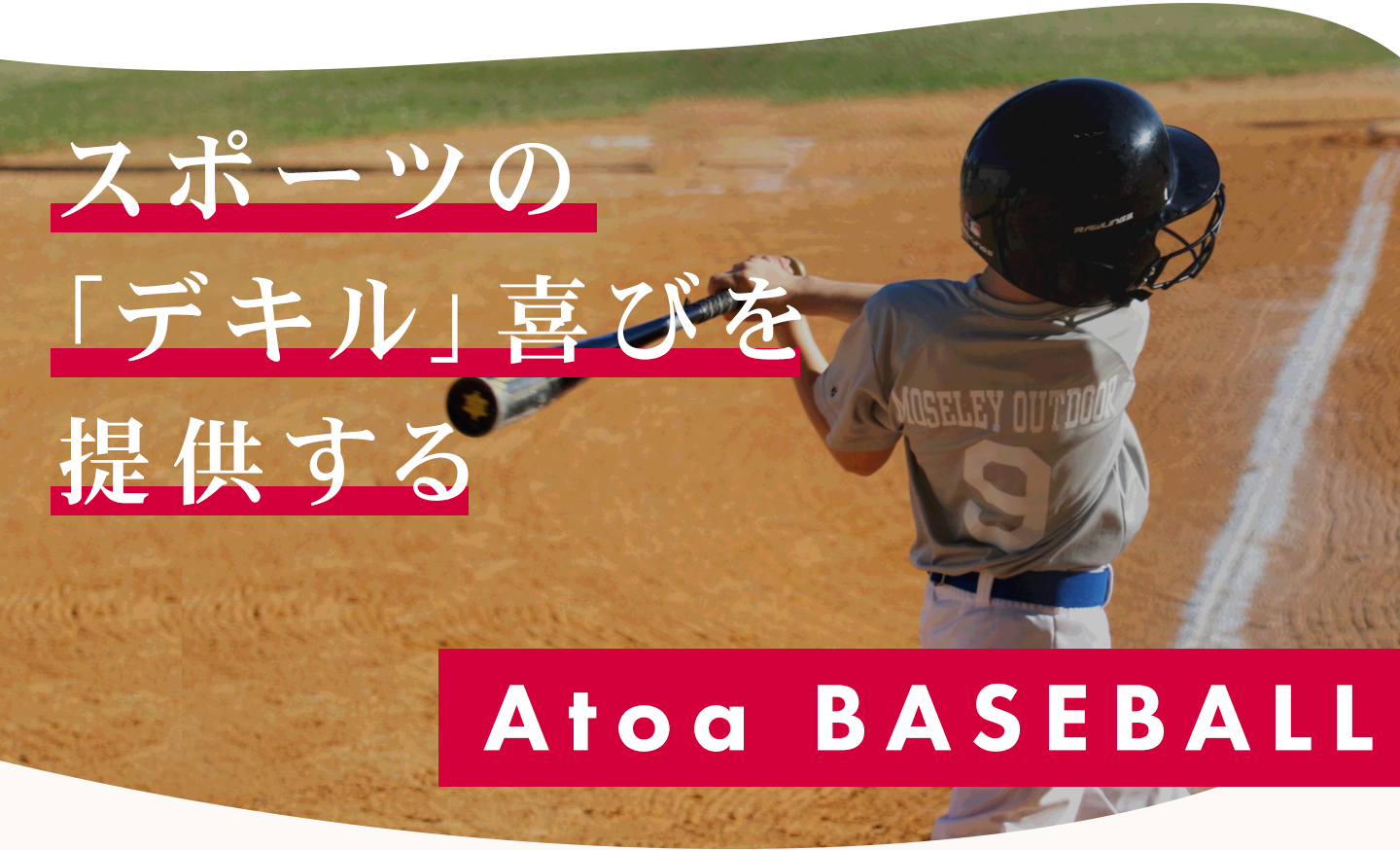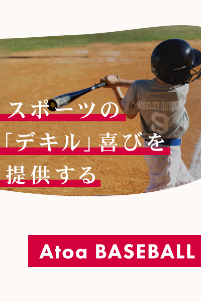ピッチングマシーン製造開始より40年以上が経過し、野球人口減少やチームの統廃合により、十分な練習環境が確保できないチームの為に、これまで培ってきた知識·技術を注入し、新たにオリジナル商品を開発し、野球を愛するプレーヤーに「デキル」喜びを提供するため、AtoaBaseballを立ち上げます。