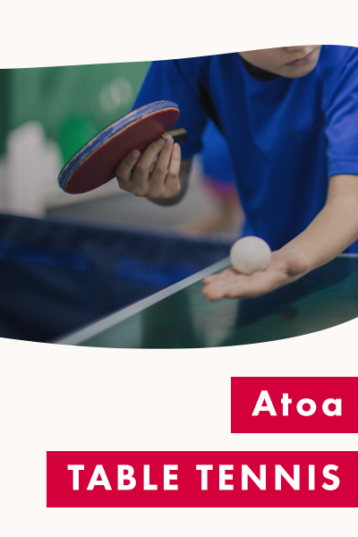 - アトア テーブルテニス -ボール自動循環機能付きで、ネット内に打ち返したボールを自動で回収し、投球いたします。