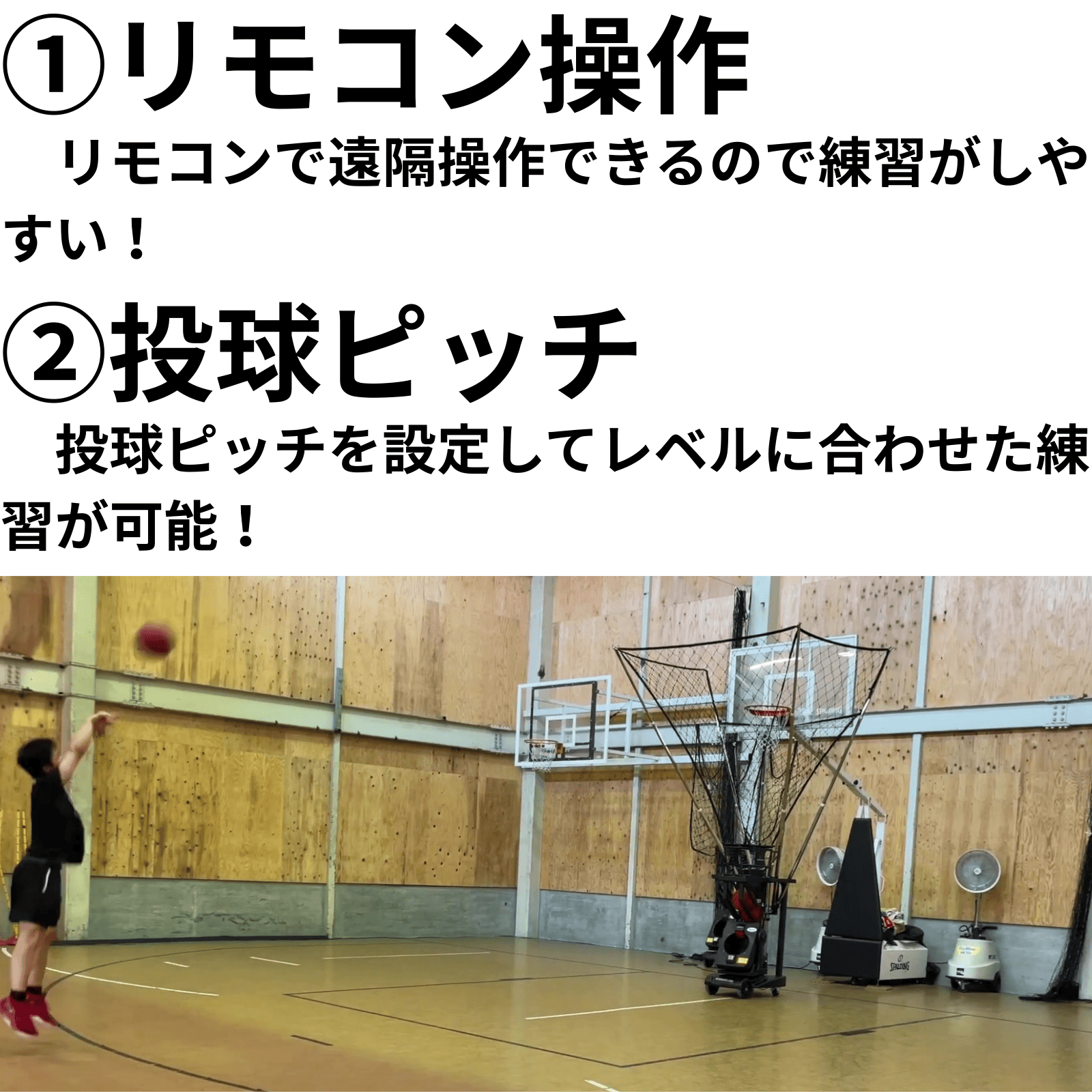 バスケットボール シューティングマシン|リモコン操作・180°首振り対応